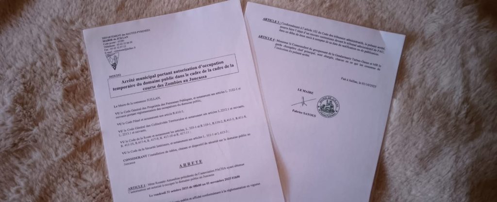 Je crée une chasse aux zombies dans mon village. Et après des semaines à jongler entre mails, dossiers, et coups de fil, j’ai enfin obtenu l’arrêté municipal et toutes les autorisations officielles.