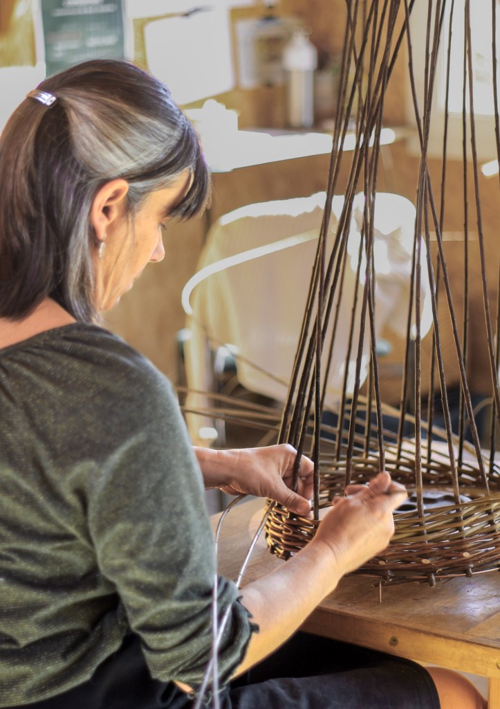 « J’ai de suite tout aimé dans la vannerie : le saule qui pousse presque partout, sauvagement et cultivé depuis la nuit des temps, le cocon de l’atelier où naissent des œuvres et où se tissent des liens humains unis par une activité vivante qui ne nuit pas au vivant »
